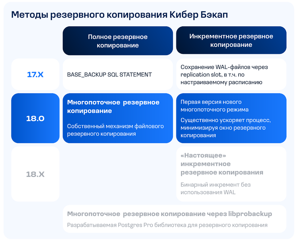 Новый режим резервного копирования PostgreSQL и СУБД на ее основе