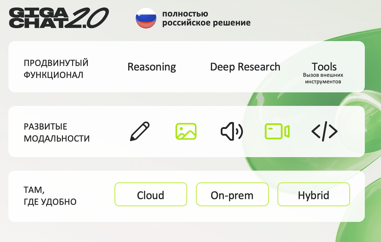 Генеративный ИИ в России только начинает развиваться — в 2024 г. его внедрили хотя бы в один процесс только 37% крупных компаний. Однако, у технологии большое будущее, уверен Глеб Кузьмин, коммерческий директор GigaB2B. Его компания предлагает GigaChat 2.0 — продукт для бизнеса, который умеет с разными модальностями, имеет продвинутый функционал и может быть размещен как в облаке, так и на собственных мощностях или в гибридной инфраструктуре.