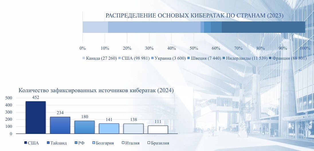 Постоянное увеличение количества событий и инцидентов ИБ, а также растущий спрос на специалистов ИБ и их нехватка на рынке труда подводит нас к необходимости использования высокоуровневых систем мониторинга ИБ с использованием ИИ. Сергей Савченко показывает слайд с количеством кибератак на их аэропорт и отмечает, что в 2024 г. цифры были настолько большими, что попросту перестали помещаться на слайде, поэтому он заменил их на количество зафиксированных источников кибератак.