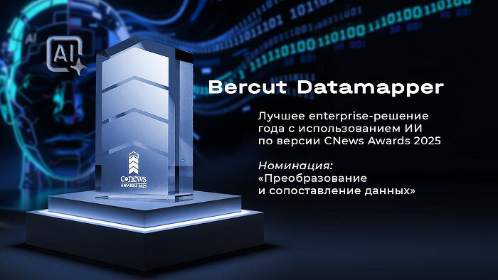 Datamapper, один из продуктов интеграционной платформы Bercut HIP 2.0, получил премию CNews Awards 2025 в номинации «Преобразование и сопоставление данных: enterprise-решение года с использованием ИИ».