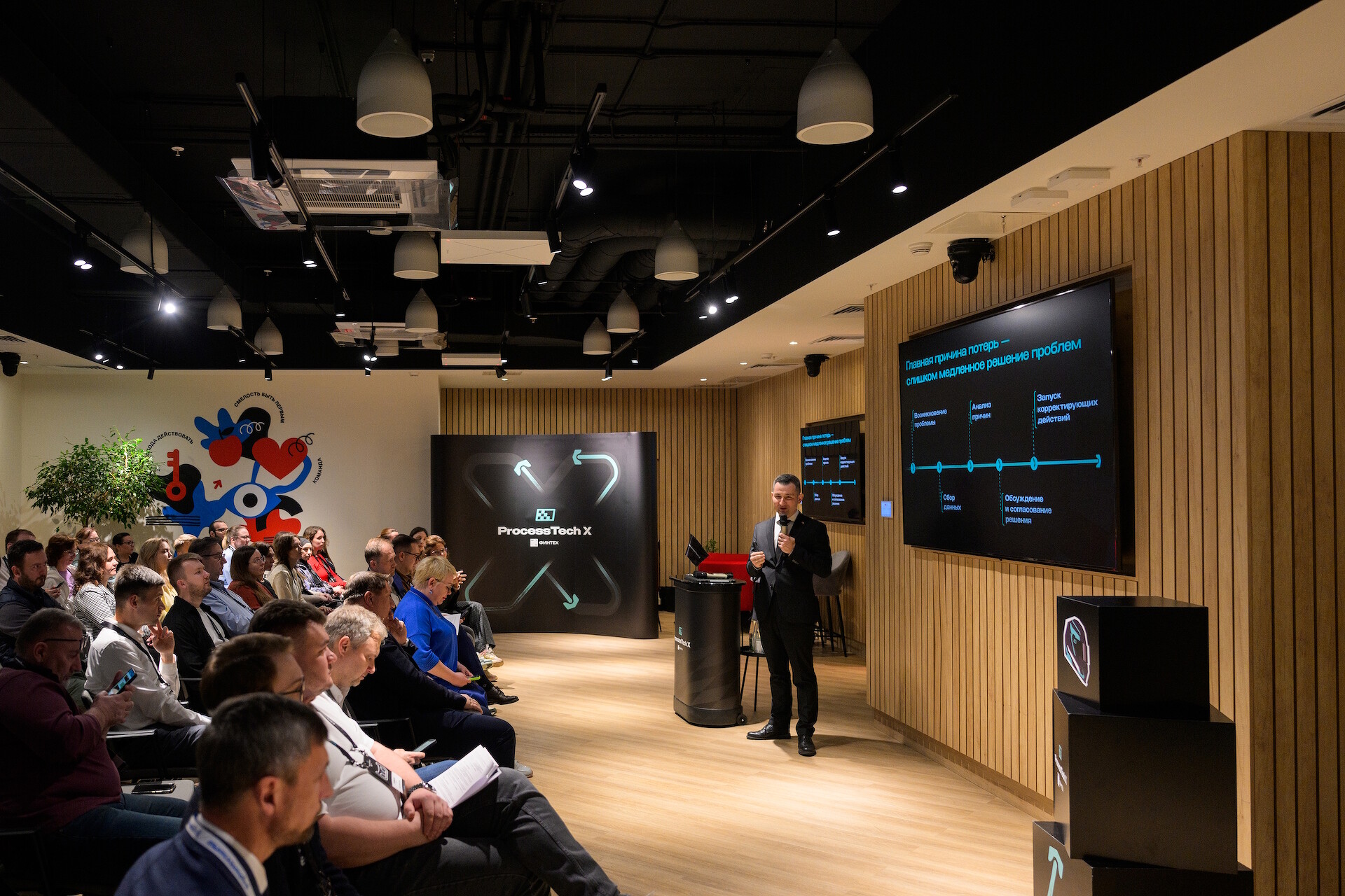 Мероприятие состояло из двух блоков: первый был посвящен практическому опыту применения процессной аналитики и искусственного интеллекта внутри МТС Финтех.
