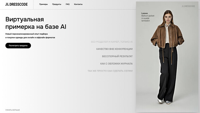 В России создано B2B-решение для fashion-индустрии Dresscode.ai, основанное на технологиях искусственного интеллекта. Решение позволяет магазинам одежды организовать виртуальные примерочные - как в онлайн, так и в оффлайне. Инвестиции в проект составили 300 млн руб.