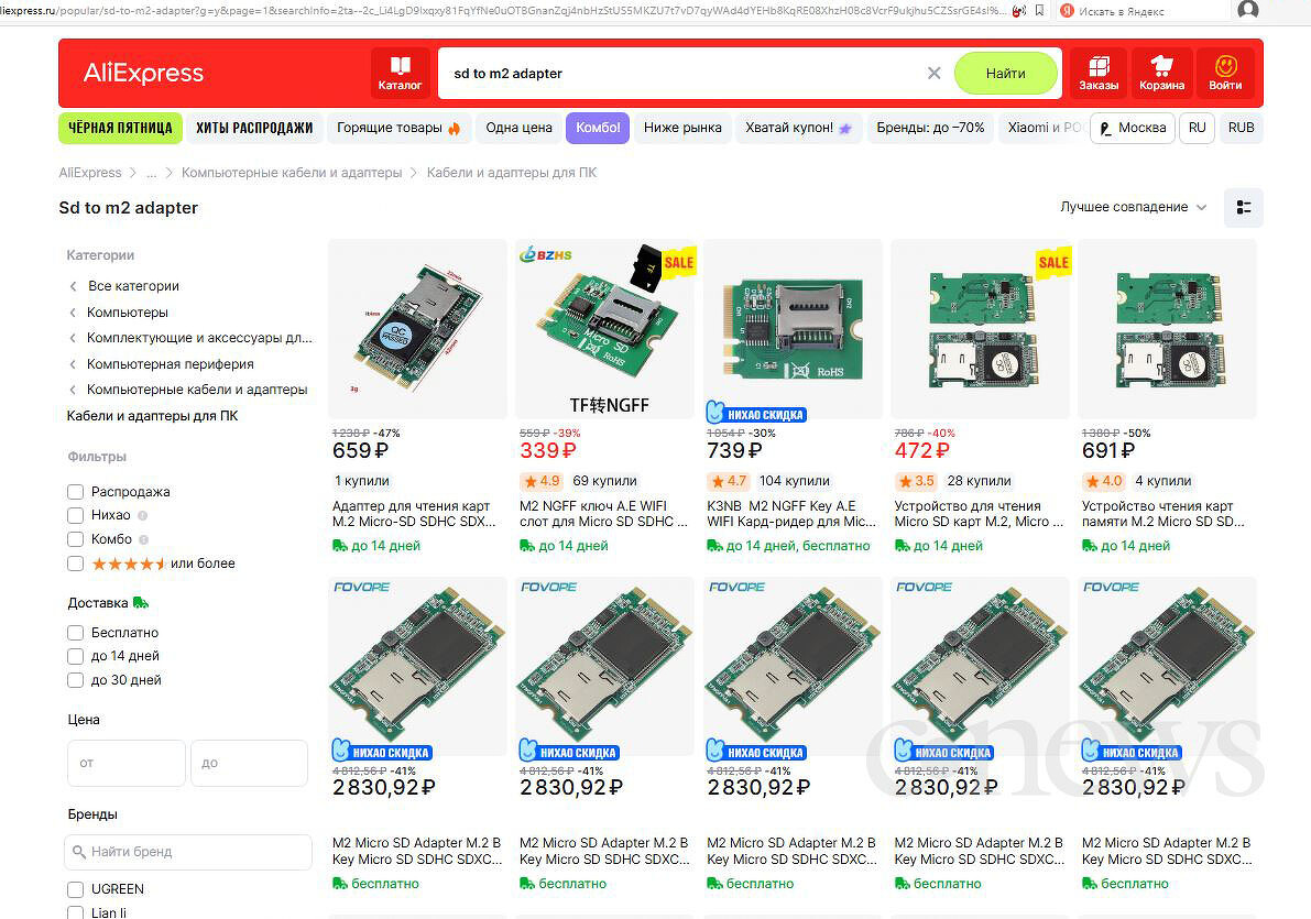Редакция CNews обнаружила на AliExpess множество переходников с microSD на M2 для подключения вместо современных SSD. Также есть немало адаптеров с microSD на SATA – этот интерфейс все еще используется во всех HDD потребительского класса, а также в некоторых пользовательских SSD.