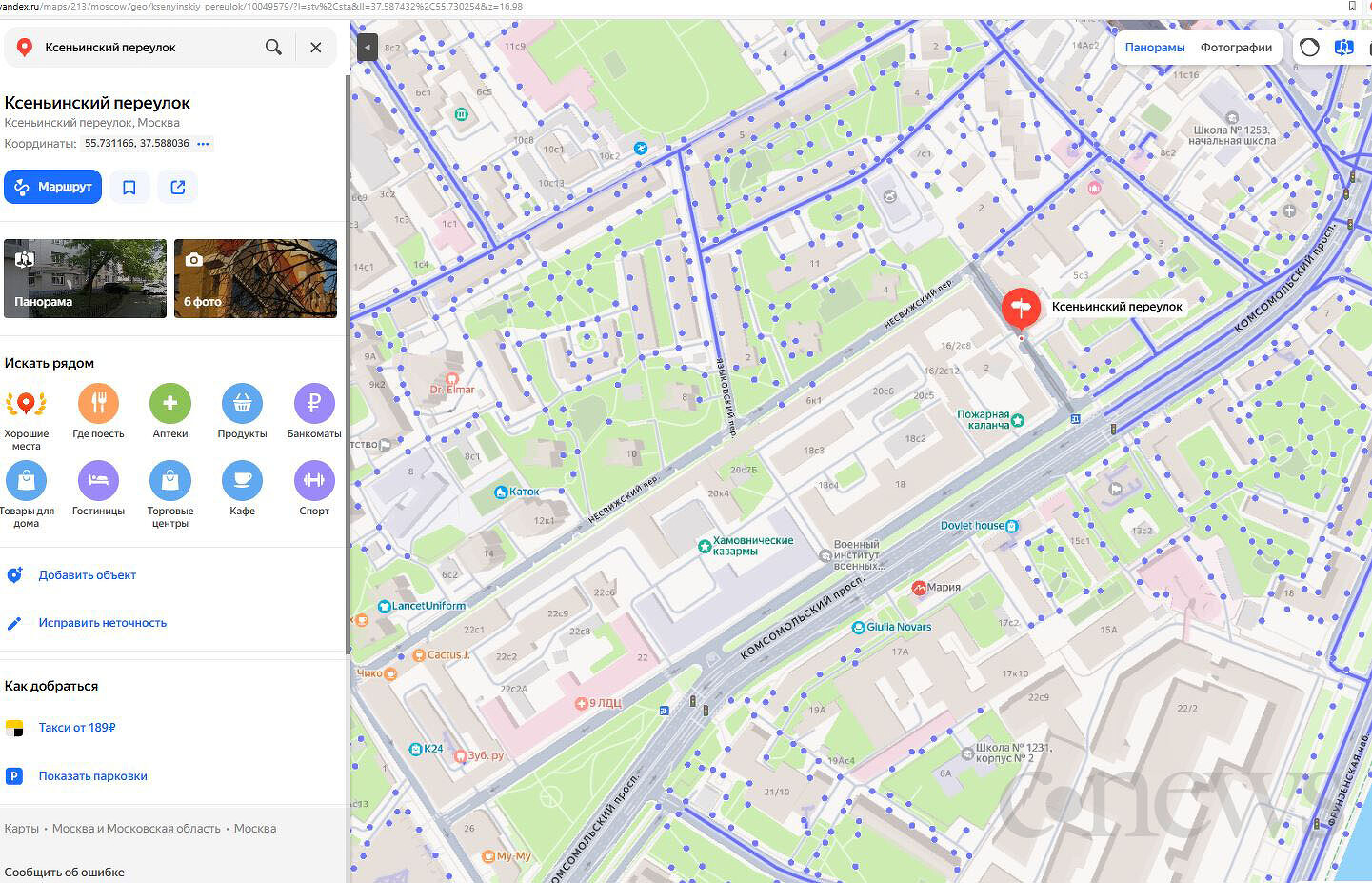 Редакция CNews обнаружила, что с сервиса «Яндекс Карты» исчезли панорамы части столичного района Хамовники, в том числе и Ксеньниского переулка. Также «зацепило» и часть Комсомольского проспекта, куда выходит этот переулок, и Несвижский переулок, примыкающего к Ксеньинскому.