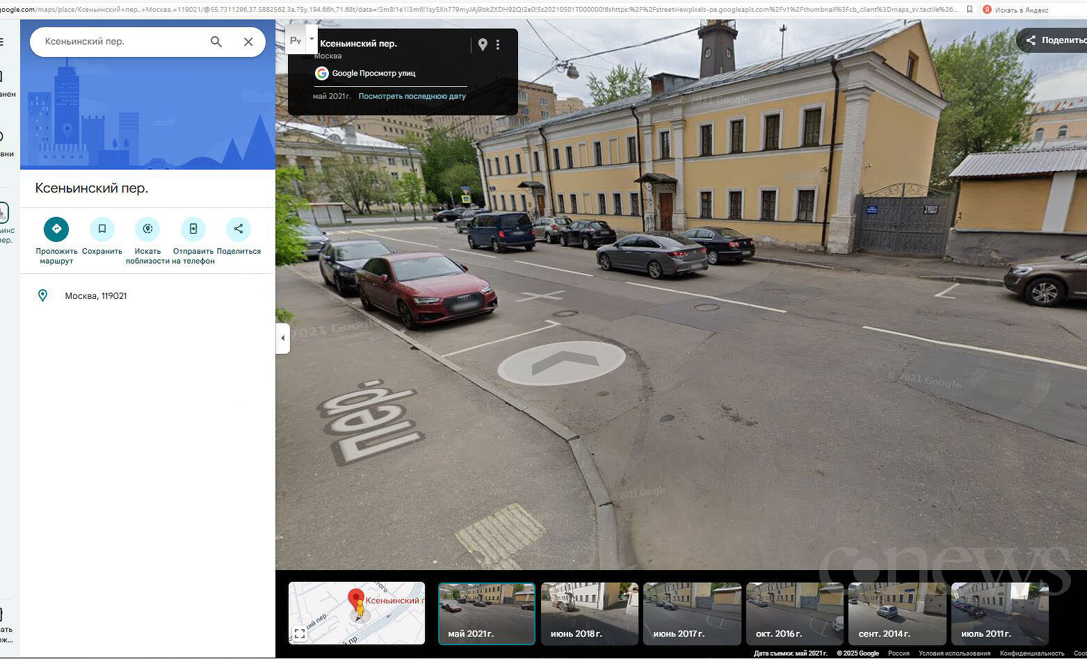 Панорамы соседних проспектов, переулок и улиц доступны в полном объеме, никаких ограничений нет. Американская компания Google, поддерживающая антироссийские санкции, не запрещает российским пользователям исследовать Ксеньинский переулок с помощью собственного сервиса, аналогичного панорамам «Яндекса». Доступные в нем панорамы датированы маем 2021 г. – более свежие данные Google не предлагает.
