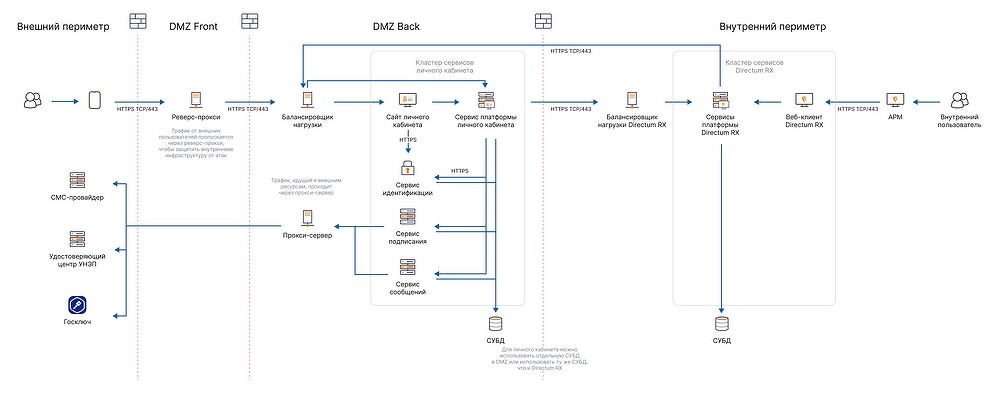 Все нюансы учтены в отечественной системе для цифровизации кадровых процессов и документов Directum HR Pro. Архитектура на основе микросервисов дает возможность распределить данные по сегментам сети: сервисы личного кабинета вынесены в DMZ, а наиболее чувствительные сведения изолированы за несколькими уровнями защиты. Все конфигурационные файлы с критичными данными (доступы к БД, служебные учетные записи) надежно шифруются. Для защиты информации при передаче используется шифрование каналов связи по протоколам TLS/ГОСТ TLS, что соответствует требованиям ФСБ к защите персональных данных.