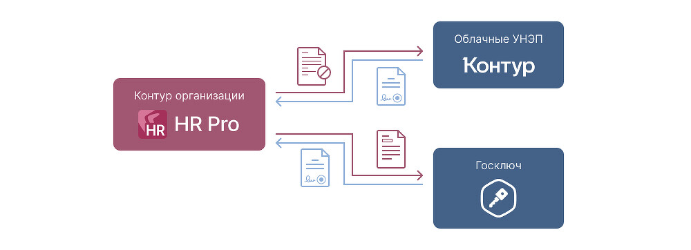 При работе с облачными удостоверяющими центрами важно обеспечить конфиденциальность документов. Технология подписания через хеш решает эту проблему: в УЦ передается не сам документ, а только его криптогорафический хеш (уникальная контрольная сумма). Это полностью исключает риск утечки данных, так как восстановить документ из хеша невозможно. Directum HR Pro использует этот метод, гарантируя, что персональные данные не покидают защищенный контур компании.
