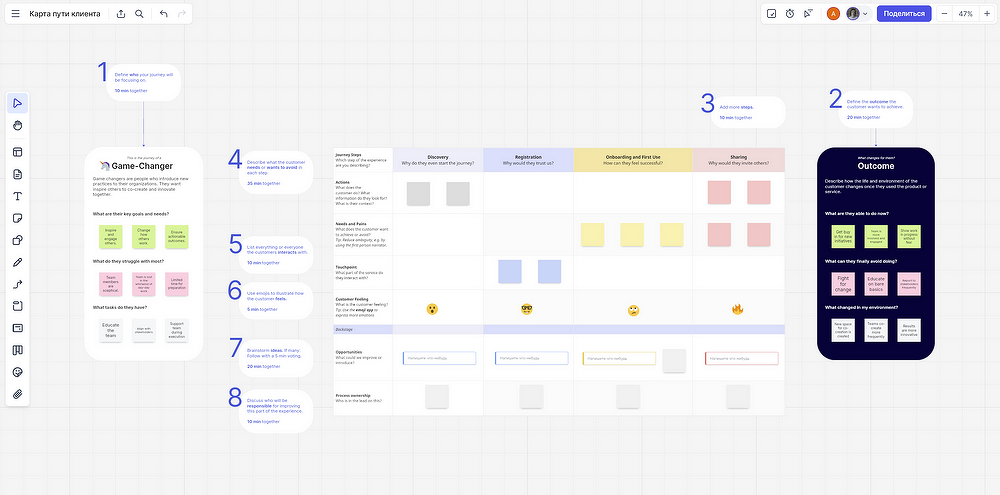 Чтобы этого не происходило, важно привлекать к выбору тех, кто будет пользоваться инструментом каждый день. Именно продуктовые менеджеры, дизайнеры, фасилитаторы и аналитики лучше других видят, помогает ли доска работать или мешает. На этапе тестирования стоит загружать реальные проекты, проверять интерфейс на интуитивность, а систему — на скорость и стабильность.