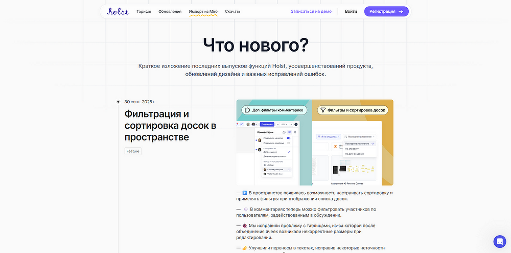 Holst развивается быстрыми темпами: за последний год было выпущено более 30 релизов. Платформа не публикует формальную дорожную карту, но предоставляет ее по запросу и делает ставку на фактические обновления. Такой подход позволяет клиентам ориентироваться не на обещания, а на реальные результаты, а бизнес получает инструмент, который эволюционирует вместе с его потребностями.